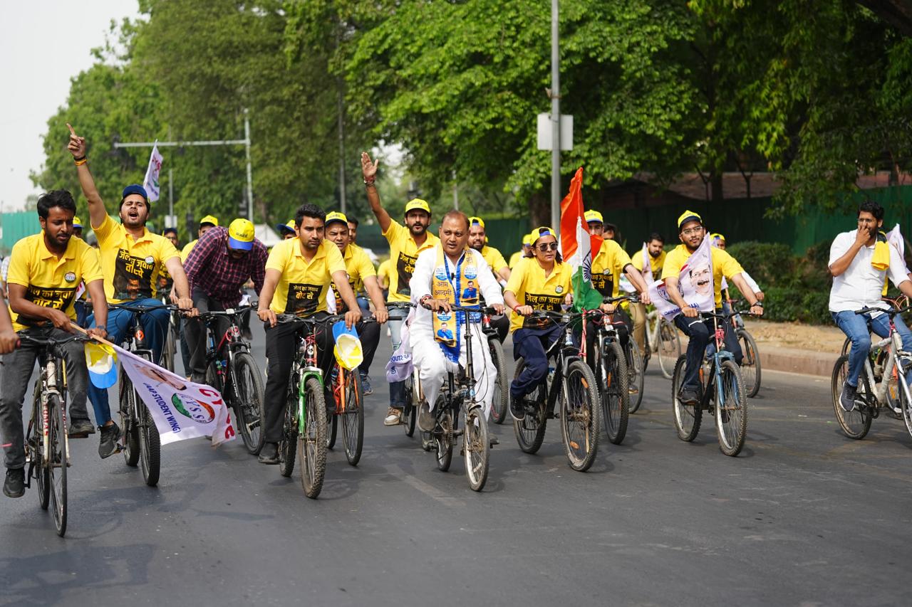 उधर, साइकिल रैली को लेकर युवा नेता वंदना सिंह ने कहा कि ‘‘आप’’ छात्र युवा संघर्ष समिति ने पार्टी मुख्यालय से लेकर इंडिया गेट तक अरविंद केजरीवाल और आम आदमी पार्टी के समर्थन में साइकिल रैली निकाली। एक आईआईटी इंजीनियर और आईआरएस अपना सबकुछ दांव पर लगाकर कई साल झुग्गियों में काम करके दिल्ली और देश के लोगों की आवाज उठाकर दिल्ली का मुख्यमंत्री बना। दिल्ली का मुख्यमंत्री बनने के बाद अरविंद केजरीवाल ने लोगों की भलाई के लिए काम कर रहे थे। केजरीवाल लोगों को फ्री बिजली, पानी, इलाज और महिलाओं के लिए बस में सफर का इंतजाम किया। ऐसे मुख्यमंत्री को केवल कुछ झूठे बयानों के आधार पर जेल में डाल दिया गया। एक सिटिंग मुख्यमंत्री को चुनाव के दौरान गिरफ्तार कर लिया गया। यह देश के लोकतंत्र के साथ बहुत बड़ा धोखा है। देश का युवा और छात्र अरविंद केजरीवाल के साथ खड़े हैं। हम देश के लोकतंत्र और संविधान को बचाने के लिए अंतिम सांस तक लड़ेंगे।