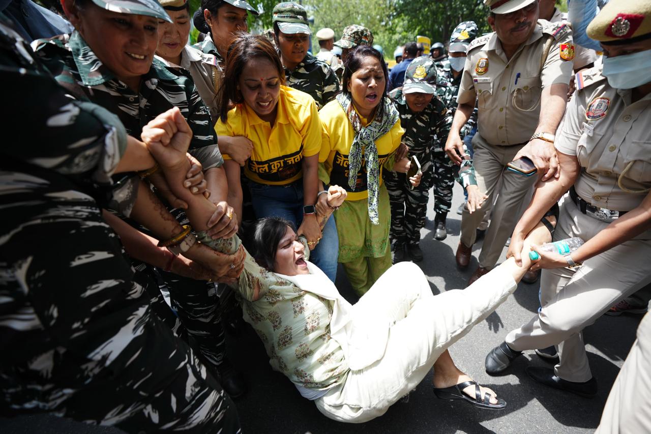नई दिल्ली, 27 अप्रैल (The News Air) दलित समाज के व्यक्ति को दिल्ली का मेयर बनने से रोकने के खिलाफ शनिवार को आम आदमी पार्टी ने भाजपा मुख्यालय पर जबरदस्त प्रदर्शन किया। इस प्रदर्शन में दिल्ली भर से भारी संख्या में दलित समाज के लोग शामिल हुए और भाजपा पर दलित विरोधी होने का आरोप लगाते हुए जमकर नारेबाजी की। दलित समाज के लोगों ने जय भीम के नारे लगाते हुए कहा कि वो अपना हक लेकर रहेंगे, इसके लिए चाहे जितनी भी बड़ी लड़ाई लड़नी पड़े। इस दौरान पुलिस ने विरोध-प्रदर्शन में शामिल ‘‘आप’’ विधायक राखी बिड़लान, अजय दत्त और मेयर प्रत्याशी महेश खिच्ची समेत दर्जनों समर्थकों को हिरासत में ले लिया। राखी बिड़लान ने कहा कि इस बार एक दलित बेटे को दिल्ली का मेयर बनना था, लेकिन भाजपा के एलजी ने रातों-रात चुनाव को रद्द कर दिया। भाजपा बाबा साहब के संविधान को बदल दलितों के वोट का अधिकार और आरक्षण छीन लेना चाहती है। इस बार पूरे देश का दलित समाज भाजपा को सत्ता से बाहर करेगा और दिल्ली की सीटों पर उसकी जमानत जब्त कर देगा।
