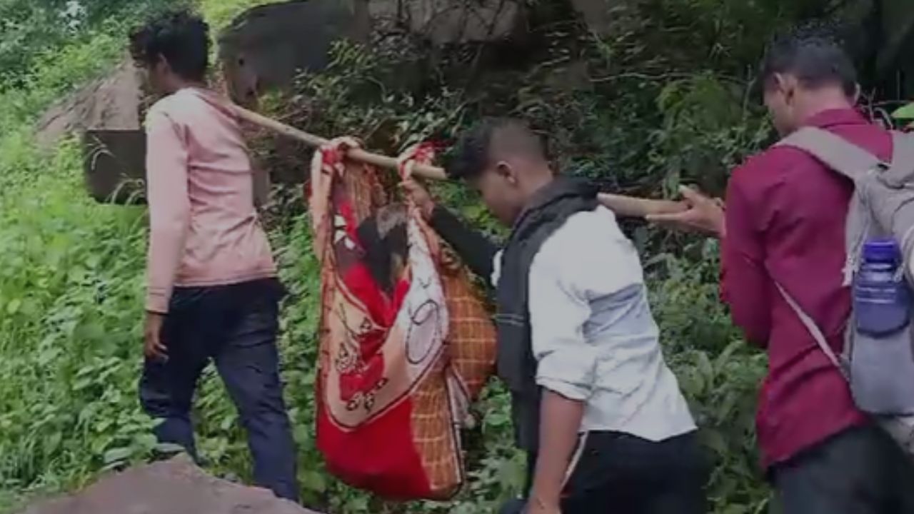 तड़पते मरीज को लेकर ऐसे पहाड़ी रास्ता किया पार