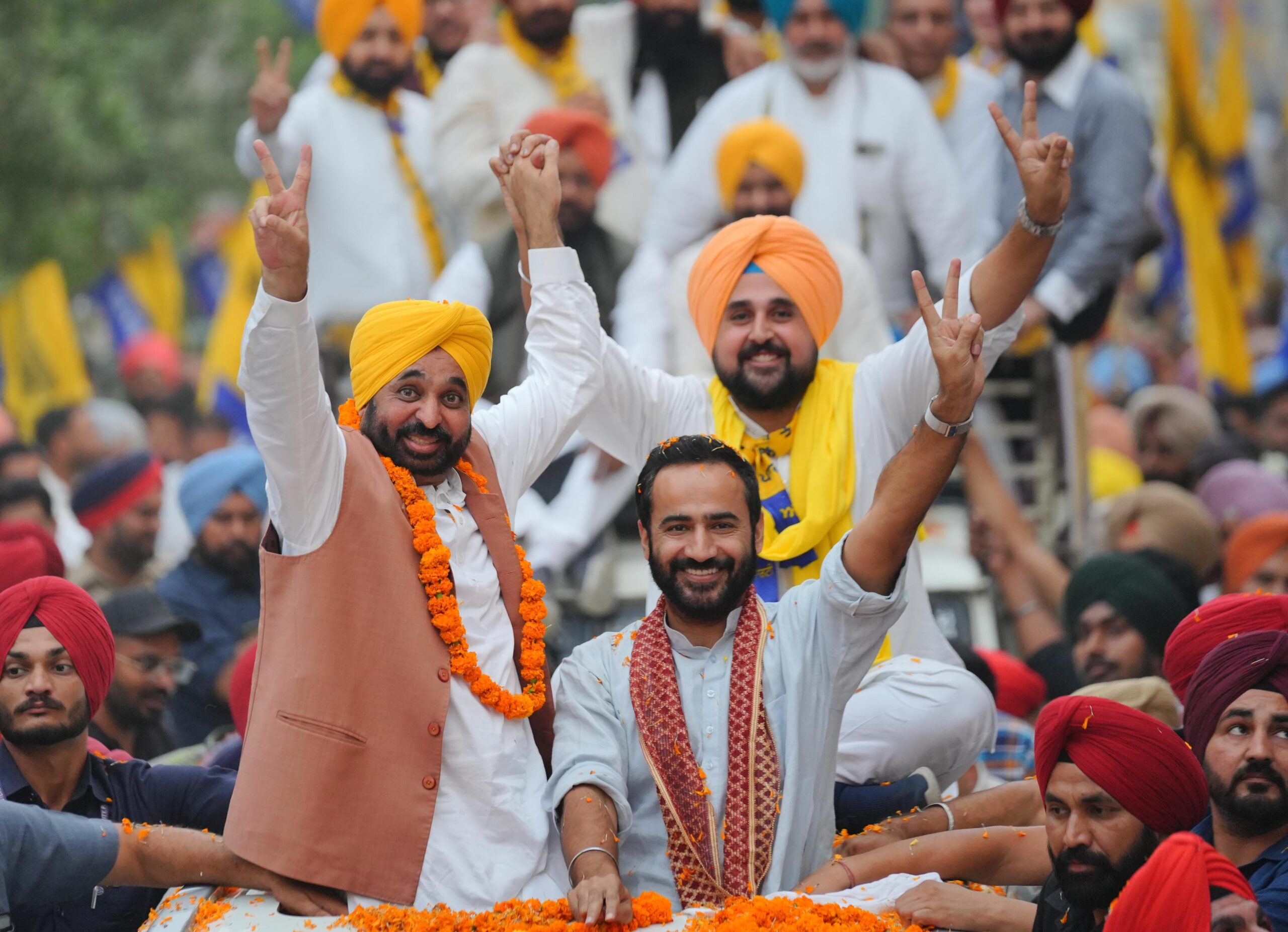 The News Air - NEWS-TICKER - बरनाला में मुख्यमंत्री मान का भव्य रोड शो : आप उम्मीदवार हरिंदर धालीवाल के लिए किया प्रचार