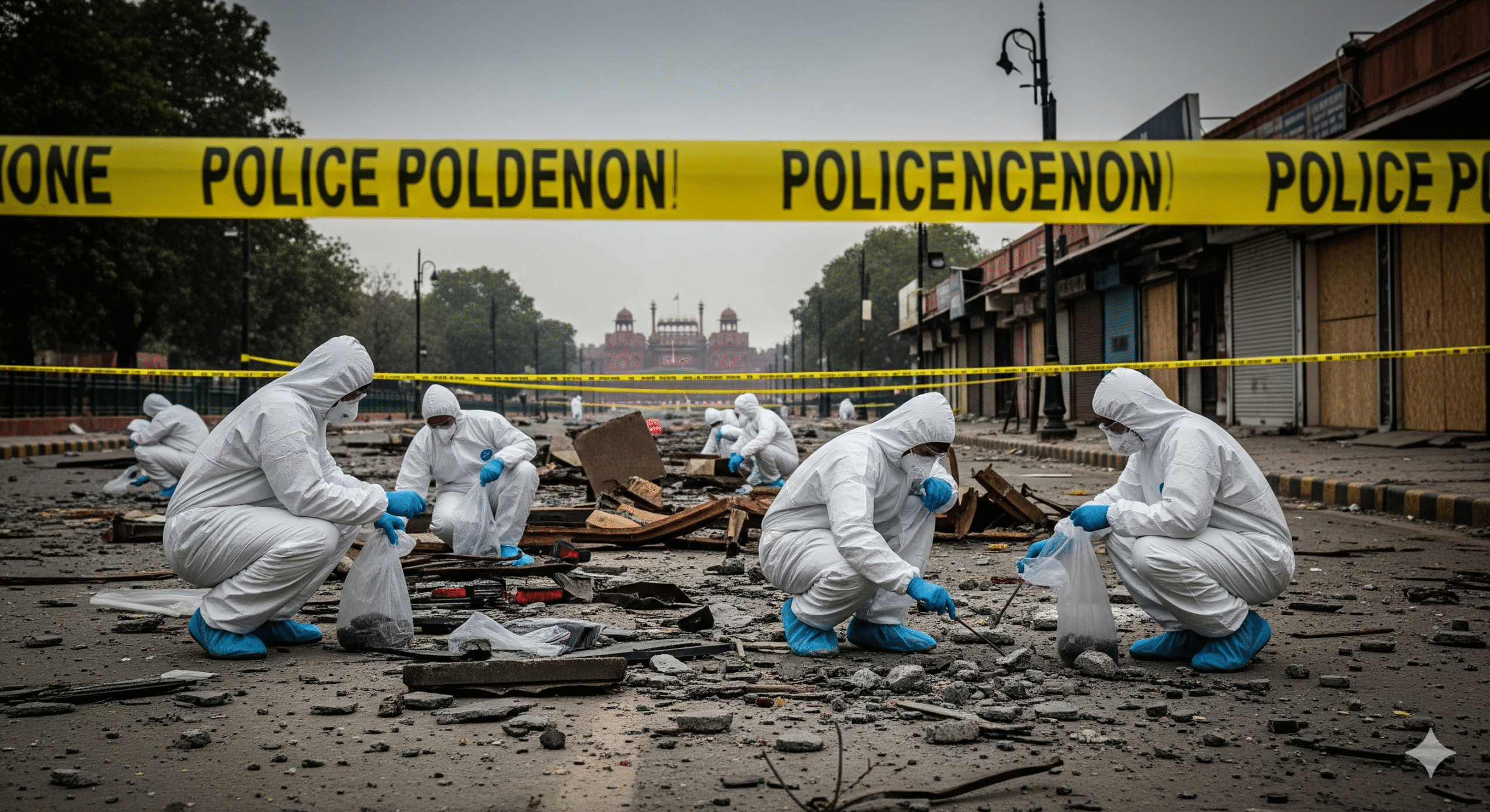 यह मंजर दिखाता है कि विस्फोट कितना शक्तिशाली था। आतंकी डॉ. उमर ने जिस i20 कार को बम में तब्दील किया था, वह धमाके के बाद सचमुच “गायब” हो गई।