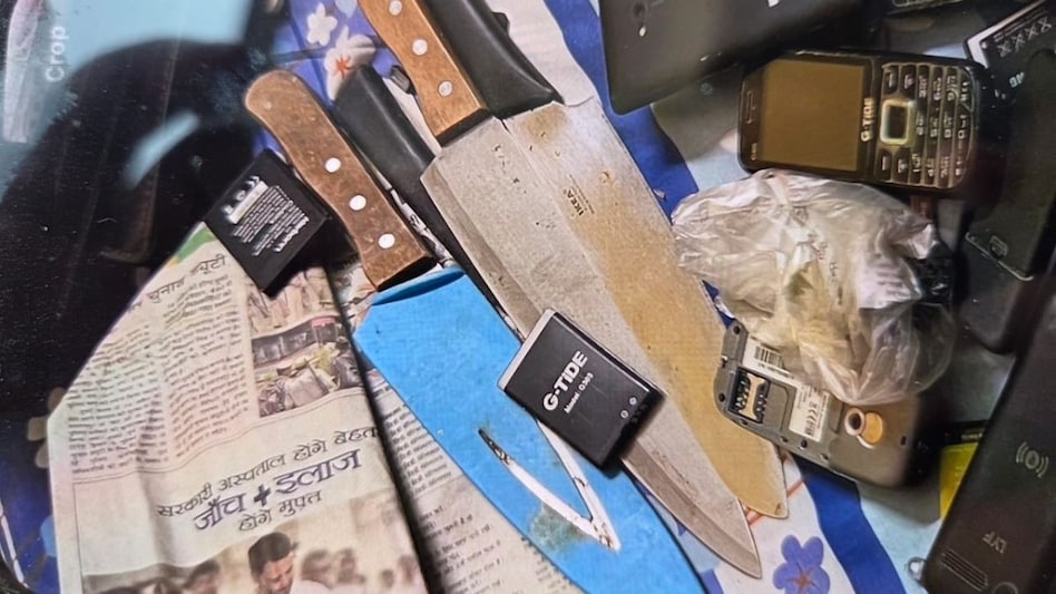 - छापेमारी में 6 की-पैड मोबाइल फोन, इंटरनेशनल सिम और 3 बड़े चाकू बरामद हुए।