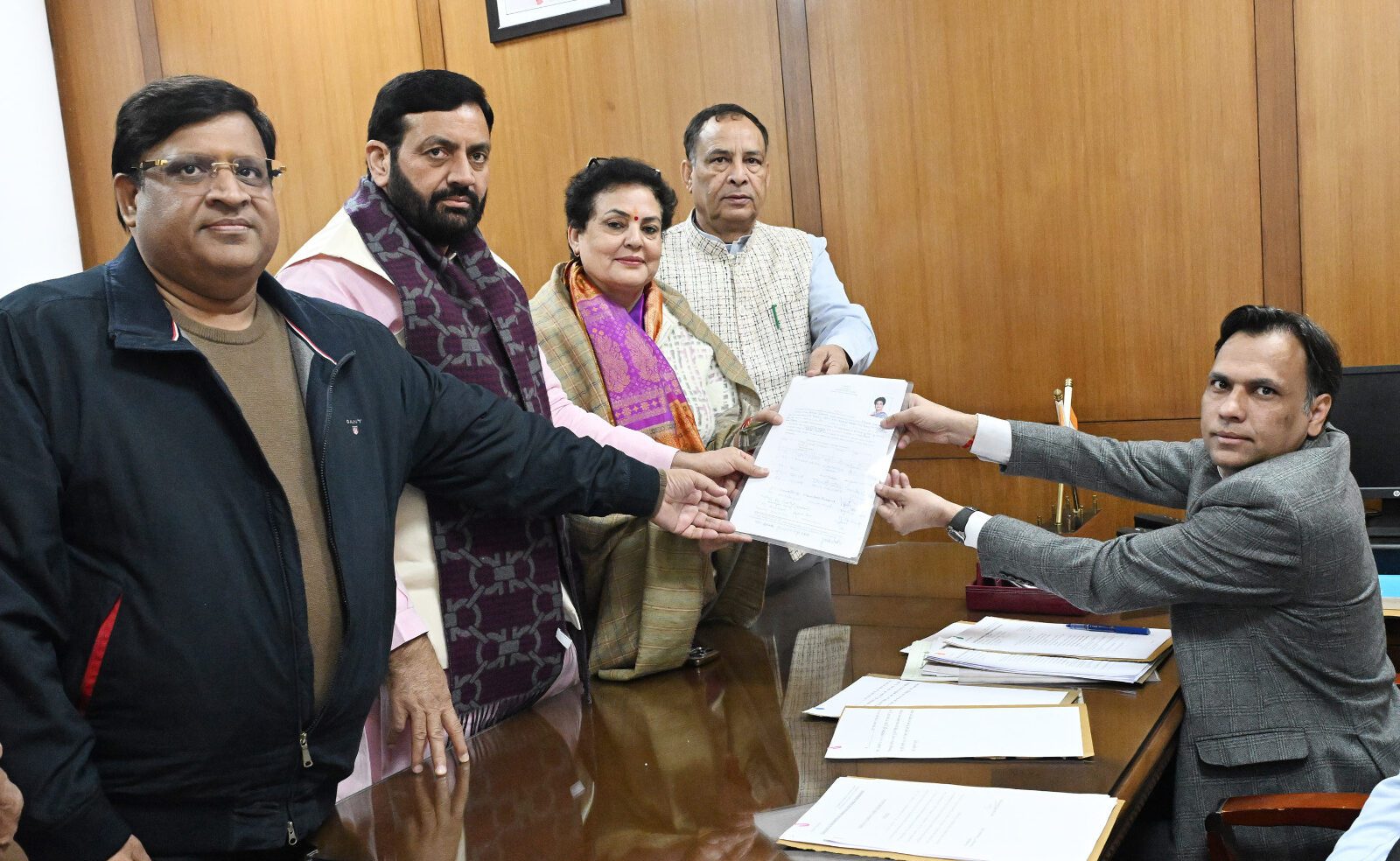 चंडीगढ़, 10 दिसंबर (The News Air) – हरियाणा में राज्यसभा सीट के उपचुनाव के लिए भाजपा प्रत्याशी रेखा शर्मा ने आज अपना नामांकन हरियाणा विधानसभा में दाखिल किया। उन्होंने अपना नामांकन रिटर्निंग अधिकारी अशोक कुमार मीणा को सौंपा। इस दौरान मुख्यमंत्री नायब सिंह सैनी, भाजपा प्रदेशाध्यक्ष मोहन लाल बडौली, कैबिनेट मंत्री कृष्ण लाल पंवार, राव नरबीर सिंह, महीपाल ढांडा, विपुल गोयल, श्याम सिंह राणा, कृष्ण कुमार बेदी, श्रुति चौधरी, कुमारी आरती सिंह राव, राज्य मंत्री राजेश नागर और गौरव गौतम सहित विधायकगण और भाजपा नेता उपस्थित थे।