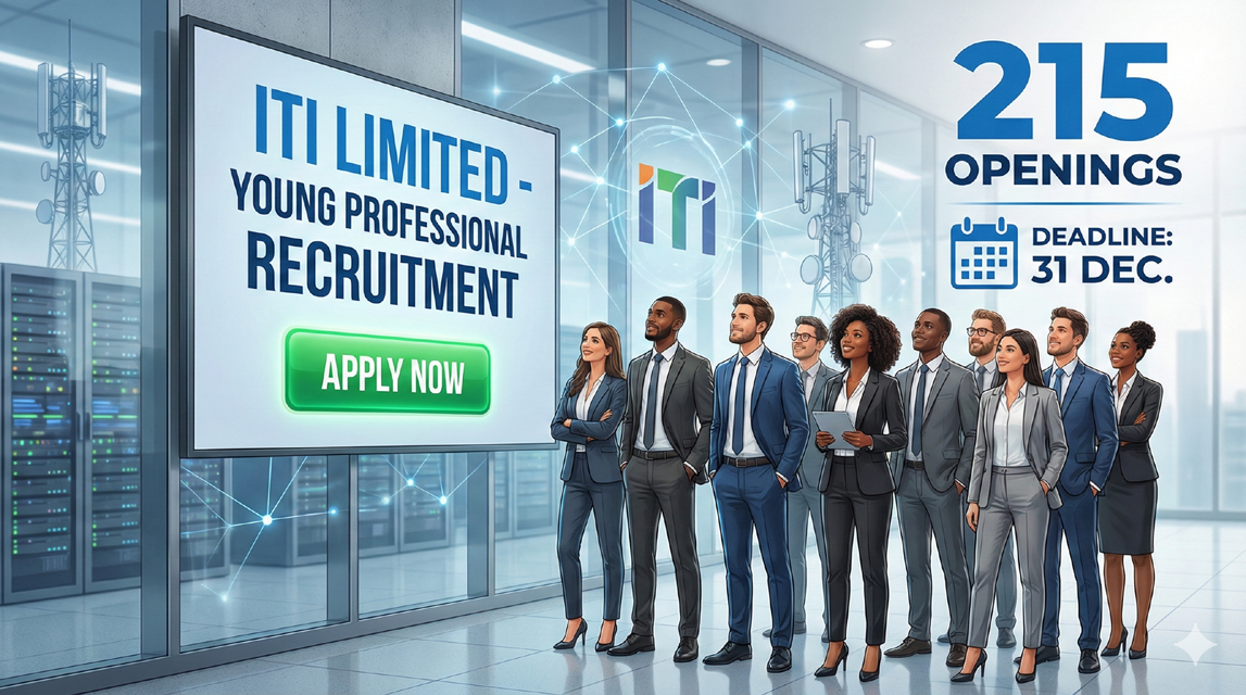 ITI Young Professional Recruitment 2025-26 : टेलीकॉम सेक्टर में करियर बनाने का सपना देख रहे युवाओं के लिए एक बेहतरीन खबर है। सार्वजनिक क्षेत्र की प्रमुख कंपनी इंडियन टेलीफोन इंडस्ट्रीज लिमिटेड (ITI Limited) ने यंग प्रोफेशनल्स के लिए 215 पदों पर भर्ती निकाली है। यह भर्ती इंजीनियरिंग, मैनेजमेंट और फाइनेंस जैसे विभिन्न क्षेत्रों में की जाएगी, जो नए ग्रेजुएट्स के लिए एक शानदार अवसर है।