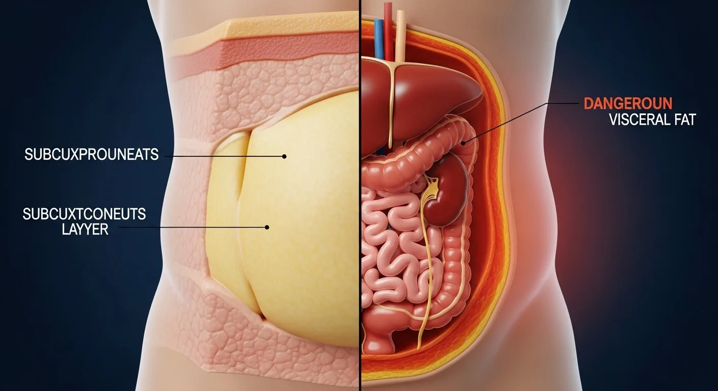 जब शरीर में चर्बी स्किन के ठीक नीचे जमा होती है तो उसे सबक्यूटेनियस फैट कहते हैं। यही सॉफ्ट बेली है — जिसे आप उंगलियों से पिंच कर सकते हैं, पोक कर सकते हैं। यह चर्बी आमतौर पर उतनी हानिकारक नहीं मानी जाती।