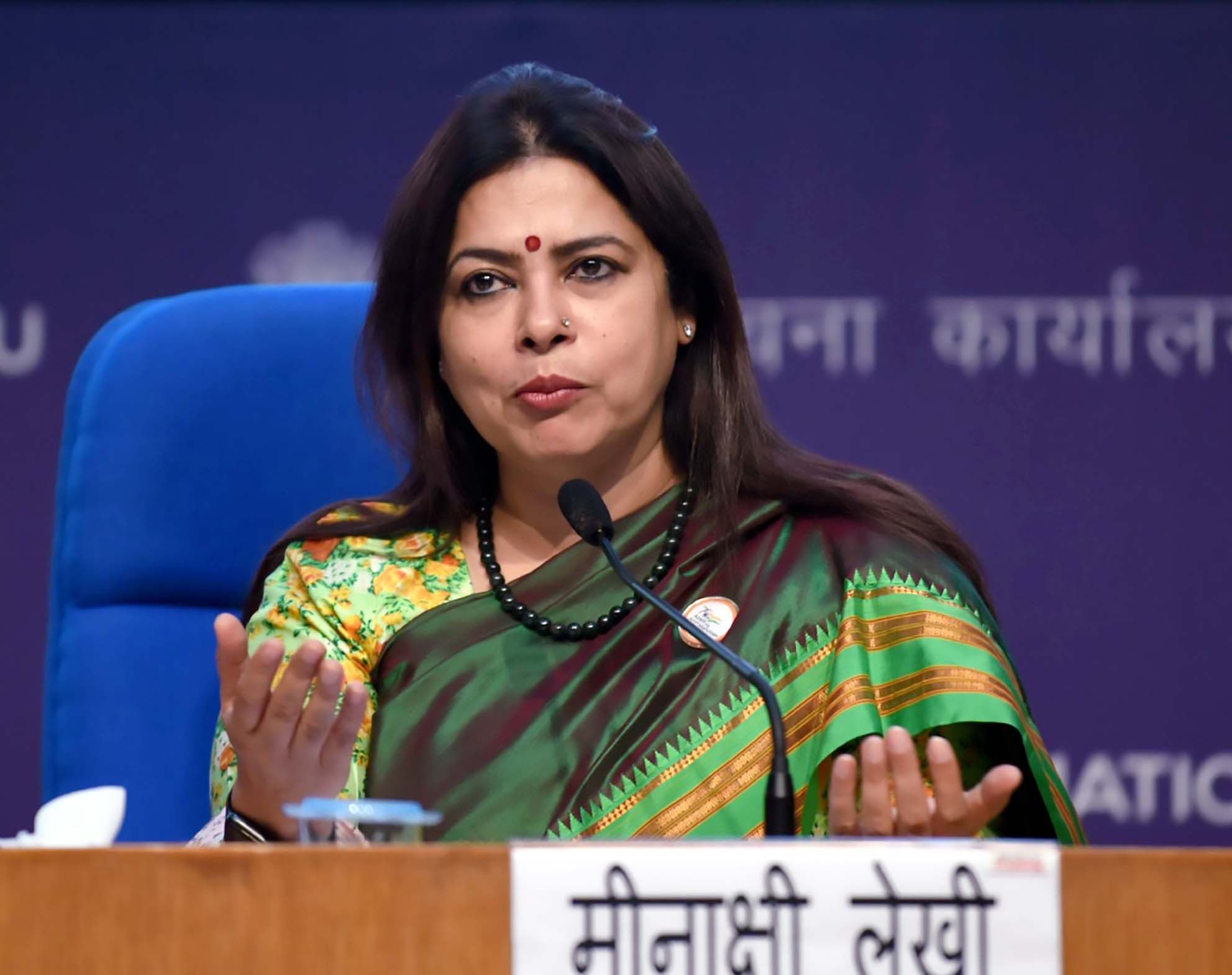 The Minister of State for External Affairs and Culture, Smt. Meenakashi Lekhi addressing a press conference to make an important announcement of Culture Ministry in connection with Republic Day Celebration, in New Delhi on November 12, 2021.