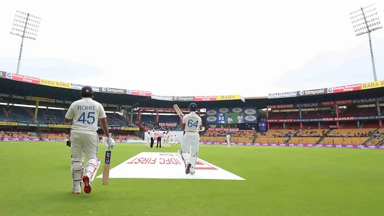 बारिश के कारण पहले दिन का खेल रद्द कर दिया गया था। बुधवार को एक भी गेंद नहीं फेंकी जा सकी। यहां तक कि टॉस भी नहीं हो सका। बुधवार को पूरे दिन बारिश की संभावना जताई गई थी। बीच बीच में कुछ देर के लिए बारिश रुकी, लेकिन मैदान पर गड्ढों की वजह से पिच को इतनी आसानी से नहीं सुखाया जा सकता था। लगभग पूरे दिन पिच कवर्स के अंदर रहा। बुधवार को बेंगलुरु में ऑरेंज अलर्ट था और स्कूल भी बंद कर दिए गए थे। मंगलवार से ही बेंगलुरु में बारिश हो रही है। बीसीसीआई ने अपडेट दिया था कि गुरुवार को टेस्ट के दूसरे दिन 98 ओवर गेंदबाजी होगी टॉस पौने नौ बजे होगा, जबकि पहली गेंद नौ बजकर 15 मिनट पर फेंकी जाएगी।