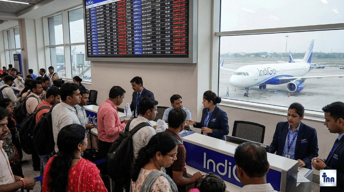 DGCA के नए नियमों ने बढ़ाई इंडिगो की मुश्किलें, 200 से ज्यादा फ्लाइट्स रद्द और 1400 से अधिक लेट, यात्री परेशान।