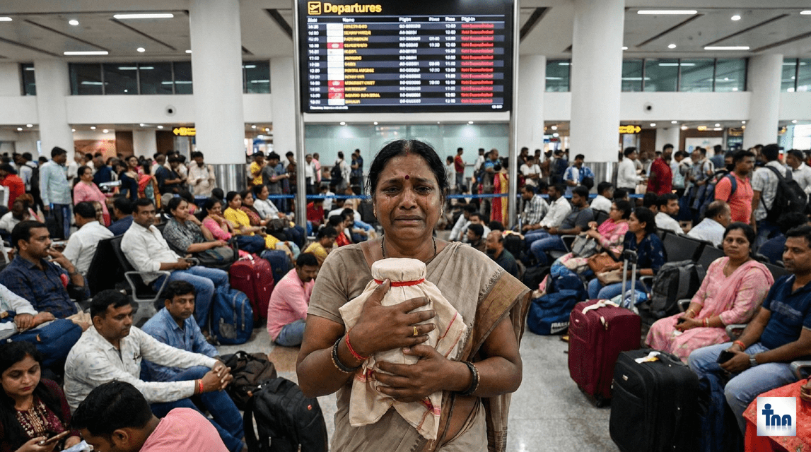 एयरपोर्ट पर फंसे यात्रियों का दर्द देखकर रूह कांप उठेगी। एक यात्री, जिनके हाथ में उनके पिता की अस्थियां थीं और जिन्हें हरिद्वार जाना था, ने अपना दुख साझा किया। उन्होंने बताया कि उन्हें फ्लाइट कैंसिल होने का कोई पूर्व नोटिफिकेशन नहीं मिला। एयरपोर्ट पहुंचने पर क्यूआर कोड स्कैन करने के बाद पता चला कि फ्लाइट रद्द है। एयरलाइन उन्हें दूसरी फ्लाइट लेने के लिए मजबूर कर रही है, लेकिन एयर इंडिया की टिकट 60 हजार रुपये प्रति व्यक्ति है, जिसे वे अफोर्ड नहीं कर सकते।