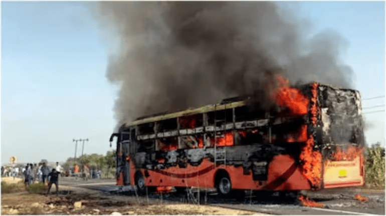 बस के अंदर फंसे यात्रियों की चीख-पुकार से हाईवे पर कोहराम मच गया। इससे पहले कि कोई कुछ समझ पाता, कई जिंदगियां आग की भेंट चढ़ चुकी थीं।