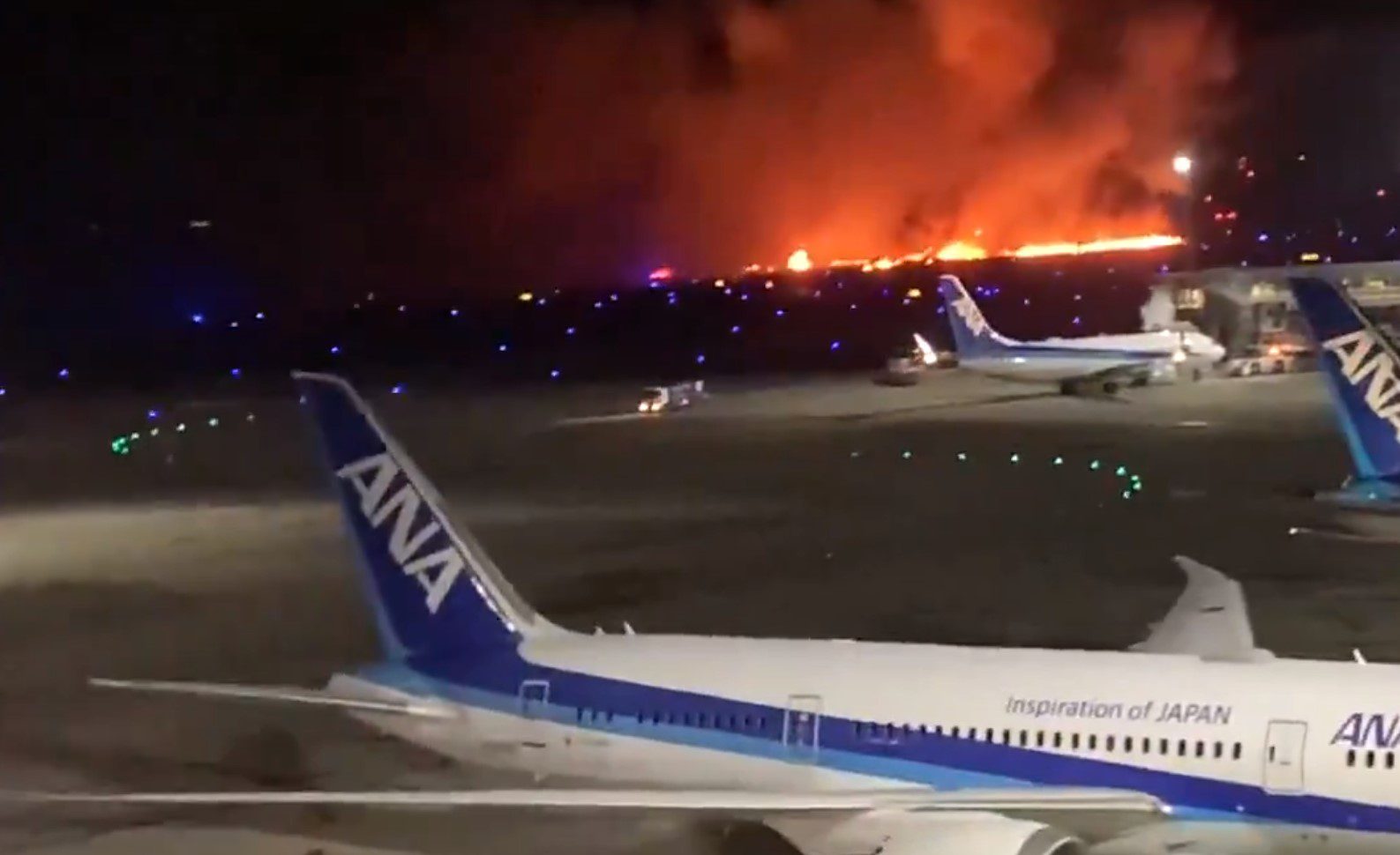 टोक्यो, 2 जनवरी (The News Air) देश के राष्ट्रीय प्रसारक एनएचके ने एक रिपोर्ट में कहा कि जापान एयरलाइंस के एक विमान को मंगलवार को टोक्यो के हानेडा हवाई अड्डे पर एक अन्य विमान के साथ संभावित टक्कर के बाद आग की लपटों में घिरा देखा गया।