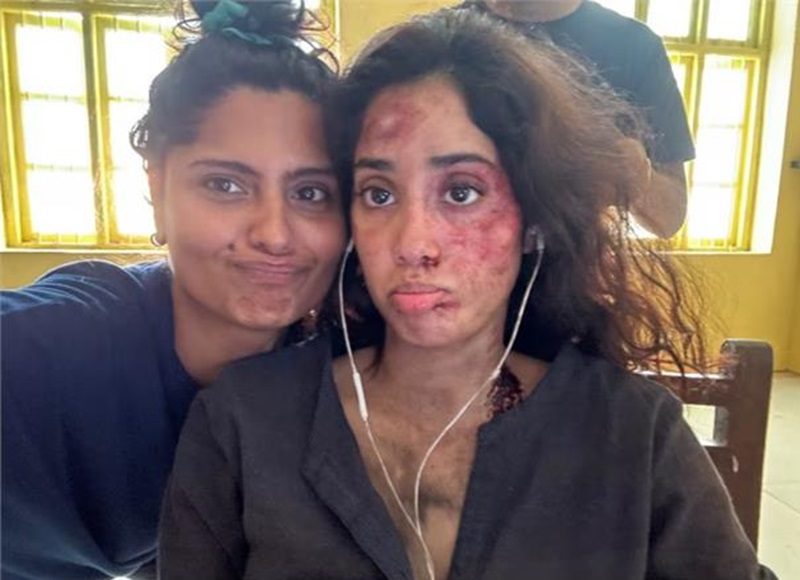 इस तस्वीर को देखकर फैंस चिंतित हो गए हैं और पूछ रहे हैं कि क्या जाह्नवी ठीक हैं। दरअसल, यह तस्वीर फिल्म ‘उलझ’ की शूटिंग के दौरान की है, जिसमें उनके किरदार को गंभीर स्थिति का सामना करना पड़ रहा है। इस फोटो में जाह्नवी खून से लथपथ दिखाई दे रही हैं।