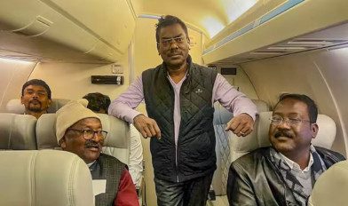 झारखंड मुक्ति मोर्चा के नेतृत्व वाले गठबंधन के विधायक रांची से दो चार्टर्ड विमानों से शहर के बेगमपेट हवाई अड्डे पहुंचे। कुछ कांग्रेसी नेताओं ने उनका स्वागत किया।