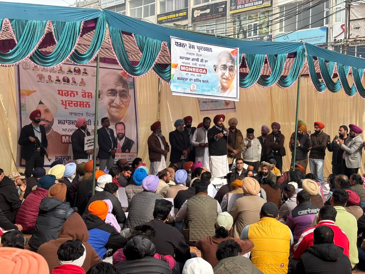 यह विरोध प्रदर्शन केंद्र सरकार के उस फैसले के खिलाफ पंजाब कांग्रेस द्वारा शुरू की गई एक राज्यव्यापी मुहिम का हिस्सा है, जो दलितों, पिछड़ों और समाज के अन्य हाशिए पर धकेले गए वर्गों को हर साल 100 दिनों के रोजगार की गारंटी से वंचित करने के खिलाफ है।