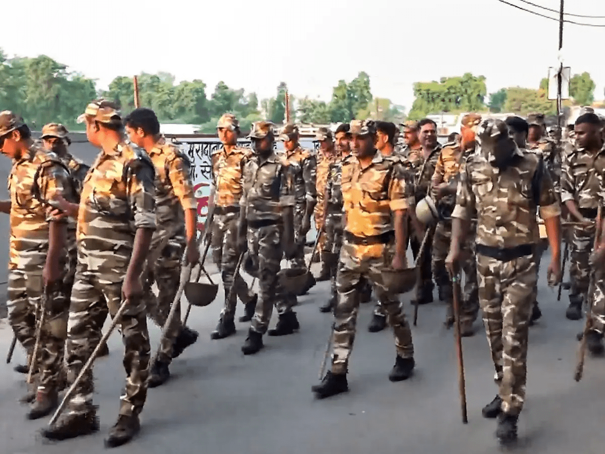 सुरक्षा के लिए PAC और RAF तैनात, ड्रोन कैमरों से निगरानी।