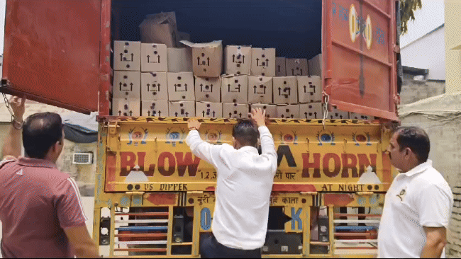 यमुनानगर, 22 जून (The News Air) : पुलिस और आबकारी विभाग ने संयुक्त रूप से दबिश देकर पृथ्वी का माजरा गांव के समीप केंटर में लदी शराब की करीब 1200 पेटी देसी शराब को अपने कब्जे में ले लिया है। आरोप है कि जिस परमेट के आधार पर केंटर शराब लेकर जा रहा था वह 2 बजे खत्म हो गया था जबकि ट्रक साढे पांच बजे शराब लेकर जा रहा था।