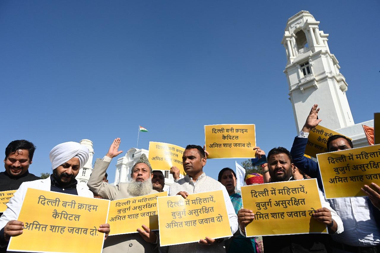 नई दिल्ली, 4 दिसंबर (The News Air) दिल्ली की बदहाल कानून व्यवस्था का मामला बुधवार को विधानसभा में जमकर गूंजा। बिगड़ी कानून व्यवस्था के खिलाफ आम आदमी पार्टी के विधायक सदन में हंगामा शुरू कर दिए और भाजपा व केंद्रीय गृहमंत्री अमित शाह के खिलाफ नारेबाजी करते हुए बेल में आ गए। इसके बाद विधायकों ने सदन से बाहर आकर विधानसभा परिसर में जमकर नारेबाजी की। इस दौरान विधायकों के हाथ में नारों से लिखी तख्तियां भी थी। विधायकों ने नारेबाजी कर अमित शाह से बिगड़ी कानून व्यवस्था पर जवाब देने की मांग की। सीएम आतिशी ने कहा कि भाजपा की केंद्र सरकार के पास दिल्ली के लोगों को सुरक्षित रखने की जिम्मेदारी है, लेकिन वह इस काम में बिल्कुल फेल हो चुकी है।