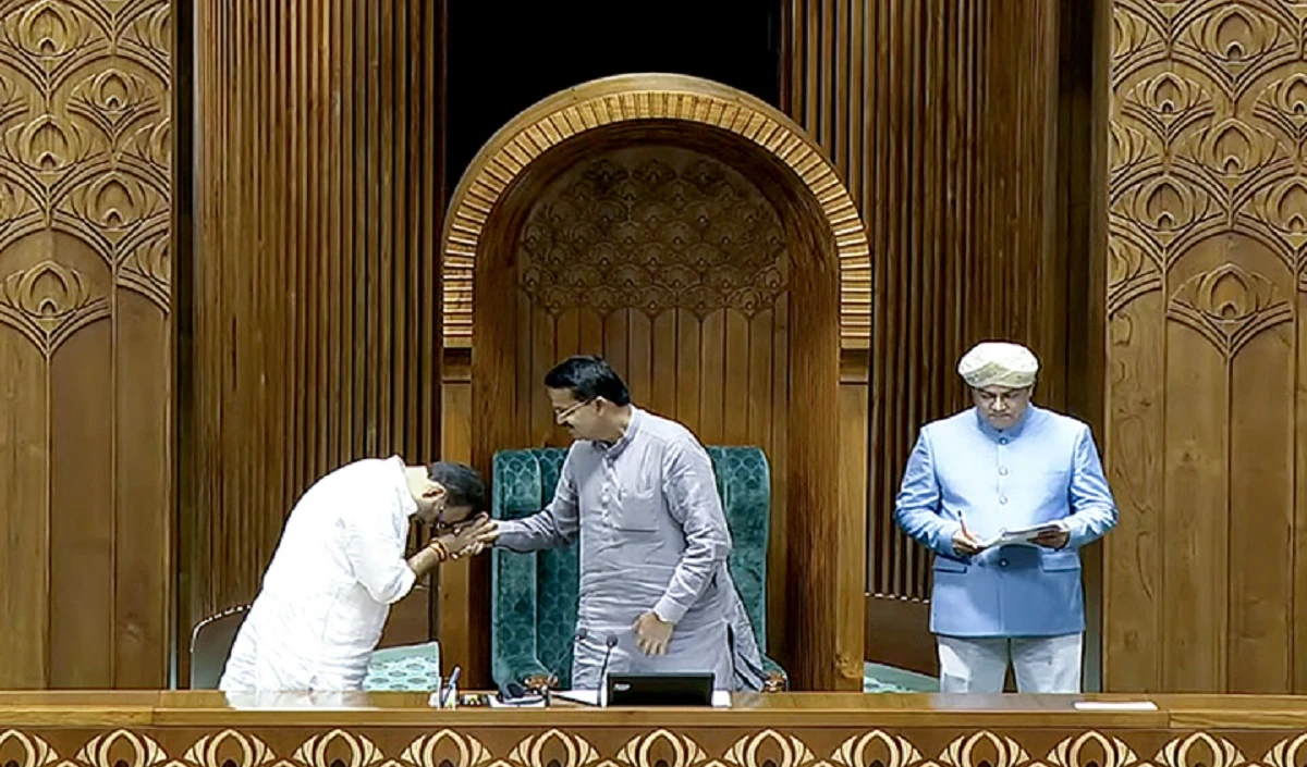 नई दिल्ली, 25 जून (The News Air) महाराष्ट्र के हिंगोली से निर्वाचित शिवसेना (यूबीटी) के सांसद नागेश बापूराव पाटिल आष्टिकर ने मंगलवार को लोकसभा की सदस्यता की शपथ लेते हुए ‘‘हिंदू हृदय सम्राट बालासाहेब जी ठाकरे’’ का उल्लेख किया जिस पर कार्यवाहक अध्यक्ष (प्रोटेम स्पीकर) भर्तृहरि महताब ने उन्हें रोका और कहा कि वह मराठी में निर्धारित प्रारूप में लिखित शपथ पत्र को ही पढ़ें।