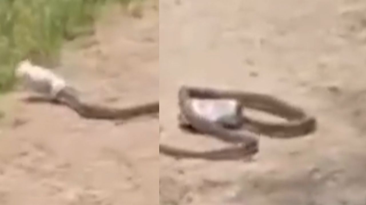 तेलंगाना के जगत्याल जिले के नल्लागोंड से सांप का एक ऐसा वीडियो सामने आया है, जिसमें वो बहुत बुरी स्थिति में फंस गया है और वो उससे बाहर निकलने की बार-बार कोशिश कर रहा है. दरअसल, वीडियो में सांप एक बीयर केन में फंस गया है. केन में सांप का पूरा फन अंदर घुसा हुआ है. सांप खूब मशक्कत करता है कि उस बीयर केन से उसका फन किसी भी तरह से बाहर आ जाए, लेकिन ऐसा होना तो थोड़ा मुश्किल ही दिखाई दे रहा है.