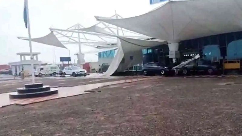 नई दिल्‍ली, 29 जून (The News Air) भारी बारिश की वजह से दिल्ली के इंदिरा गांधी इंटरनेशनल एयरपोर्ट (आईजीआई) पर शुक्रवार को छत का एक हिस्सा टूटकर गिर गया जिसमें एक कैब ड्राइवर की मौत हो गई। इस हादसे के अगले दिन गुजरात में ठीक ऐसा ही हादसा हुआ है। गुजरात के राजकोट एयरपोर्ट की छत का एक हिस्सा टूटकर नीचे गिर गया है। समाचार एजेंसी पीटीआई ने इसकी जानकारी दी। भारी बारिश के कारण एयरपोर्ट टर्मिनल के बाहर पैसेंजर पिकअप और ड्रॉप एरिया में कैनोपी (छतरी) गिर गई। जुलाई 2023 में इसका लोकार्पण हुआ था। गनीमत रही की हादसे के वक्त वहां कोई मौजूद नहीं था। वरना दिल्ली जैसा हादसा हो सकता था।