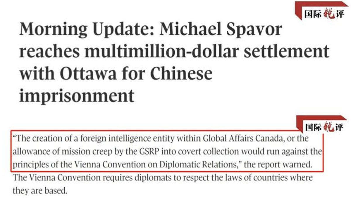 कनाडाई मीडिया ने हाल ही में यह खबर दी कि कनाडा सरकार ने एक कनाडाई व्यापारी माइकल स्पावर के साथ एक सुलह की है, जिससे चीन में जासूसी के संदेह में लगभग तीन साल तक जेल में रहने के लिए उन्हें “मुआवजा” मिला। इस खबर के अनुसार दोनों पक्षों के बीच अंतिम समझौता राशि 70 लाख कनाडाई डॉलर है।