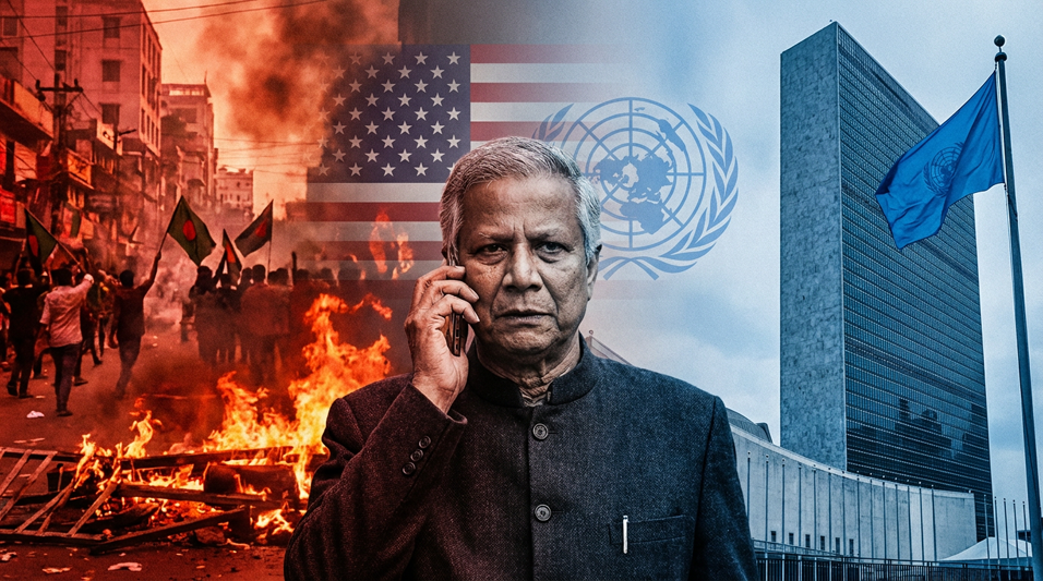 Bangladesh Violence News : बांग्लादेश में जारी हिंसा और अराजकता ने अब एक नया मोड़ ले लिया है। जिस बांग्लादेश को भारत ने आजाद कराया था, आज वही भारत को आंखें दिखा रहा है। वहां हालात इतने बदतर हो चुके हैं कि हिंदू युवक दीपू चंद्र दास और युवा नेता शरीफ उस्मान हादी की हत्या के बाद पूरा देश सुलग रहा है। अल्पसंख्यकों पर हो रहे अत्याचारों को लेकर अब संयुक्त राष्ट्र (UN) ने भी अपनी चुप्पी तोड़ी है और यूनुस सरकार को कड़ी फटकार लगाई है। इस चौतरफा दबाव के बीच बांग्लादेश के मुख्य सलाहकार मोहम्मद यूनुस (Muhammad Yunus) अमेरिका की शरण में पहुंच गए हैं।