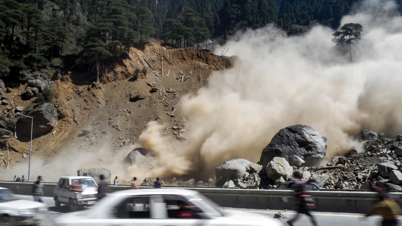 शुक्रवार को Uri में एक पहाड़ का बड़ा हिस्सा अचानक भरभरा कर नीचे आ गिरा। मंजर इतना डरावना था कि हाईवे पर गुजर रही गाड़ियों के पहिए थम गए और लोग अपनी जान बचाने के लिए वाहनों को छोड़कर भागते नजर आए। प्रत्यक्षदर्शियों के मुताबिक, पहाड़ से भारी मात्रा में मलबा और चट्टानें गिर रही थीं, जिसे देखकर ऐसा लग रहा था मानो पत्थरों की बारिश हो रही हो।