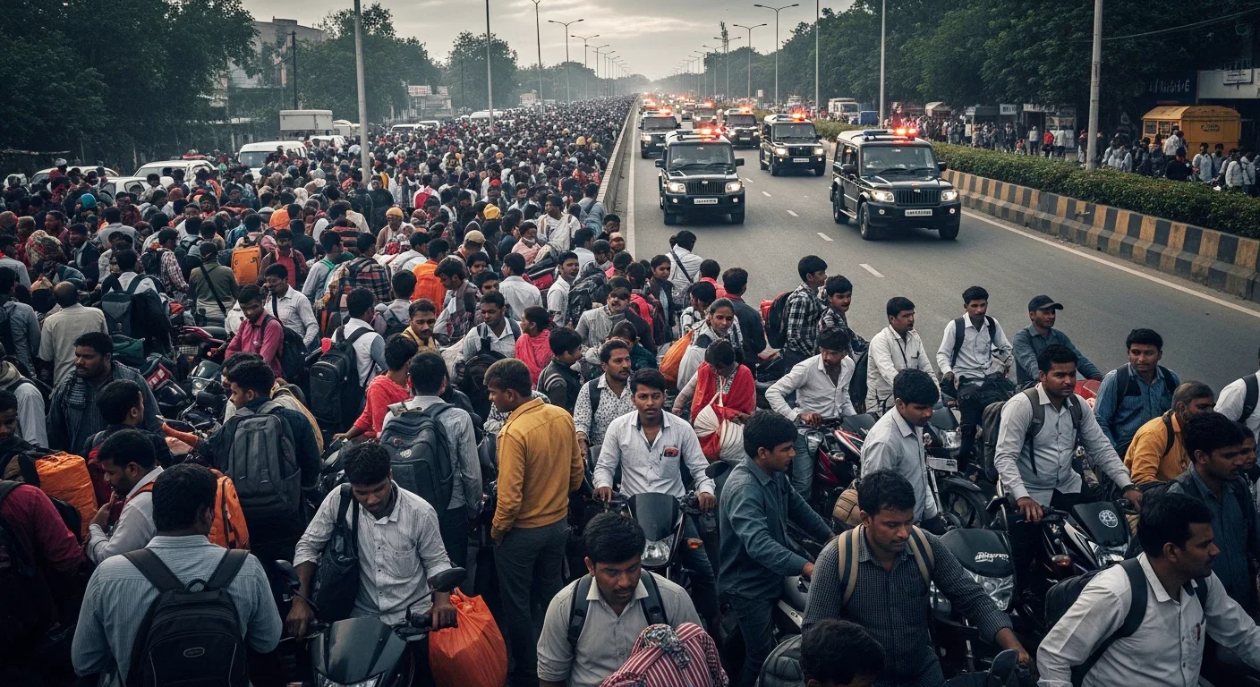फरवरी 2026 में दिल्ली में हुए Global AI Impact Summit के दौरान दुनिया भर से आए हजारों मेहमानों ने भारत की तकनीकी क्षमता नहीं, VIP संस्कृति का नज़ारा देखा। समिट में शामिल होने आए प्रतिभागियों को हैंड सैनिटाइजर, पानी की बोतल और लैपटॉप तक ले जाने से रोका गया। एक पूरा दिन VIP को छोड़कर बाकी सबके लिए सड़क बंद रही। लोगों को 5 से 6 किलोमीटर पैदल चलना पड़ा। दिल्ली एयरपोर्ट पर विमान भी देरी से उड़े।